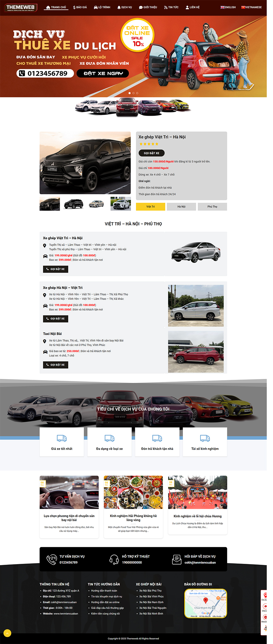 Mẫu web nội thất này được phát triển từ theme flatsome dành cho website dịch vụ vận tải , được thiết kế trên nền tảng CMS WordPress đẹp mắt và linh hoạt để phù hợp với website dịch vụ vận tải, đặt xe đưa đón online…Giao diện website xe ghép hà nội này là mẫu website đã hoàn chỉnh Quý Khách chỉ việc cài lên hosting là sử dụng như một website thông thường