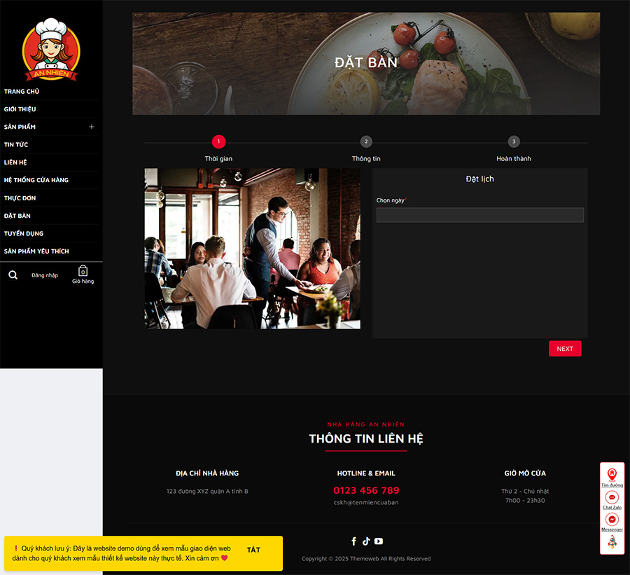 Dưới đây là một số đặc điểm và tính năng nổi bật của Mẫu website nhà hàng an nhiên :