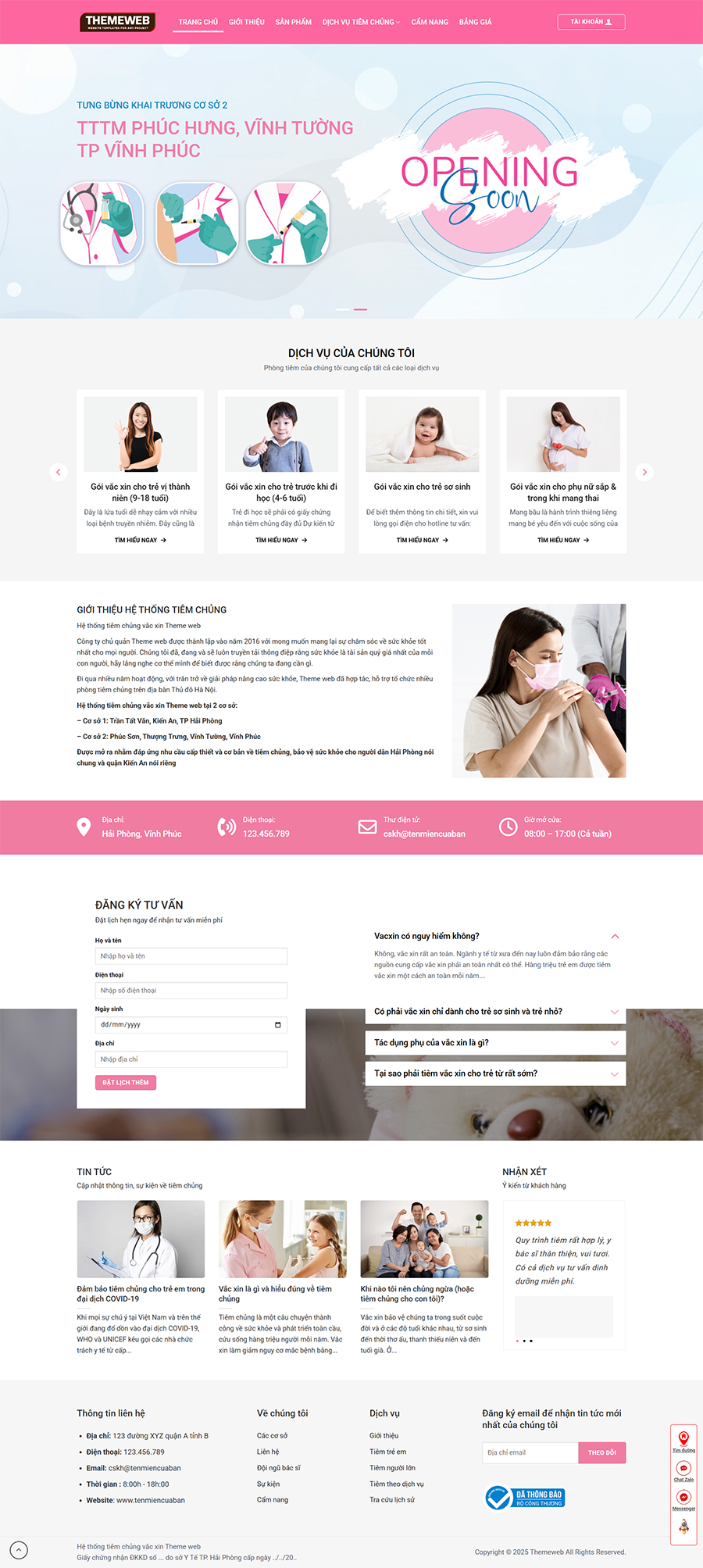 Mẫu website tiêm chủng vắc xin này được phát triển từ theme flatsome dành cho website tiêm chủng vắc xin , được thiết kế trên nền tảng CMS WordPress đẹp mắt và linh hoạt để phù hợp với website tiêm chủng vắc xin, tiêm chủng dịch bệnh, tiêm chủng trẻ em.. Mẫu website tiêm chủng vắc xin này là mẫu website đã hoàn chỉnh Quý Khách chỉ việc cài lên hosting là sử dụng như một website thông thường