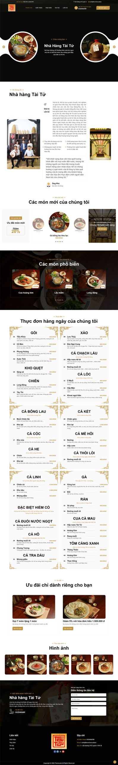 Dưới đây là một số đặc điểm và tính năng nổi bật của theme web nhà hàng tài tử :