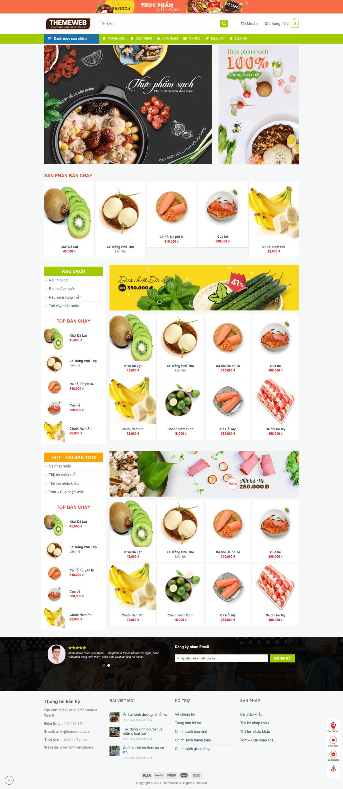 Dưới đây là một số đặc điểm và tính năng nổi bật của mẫu website bán hàng thực phẩm sạch :