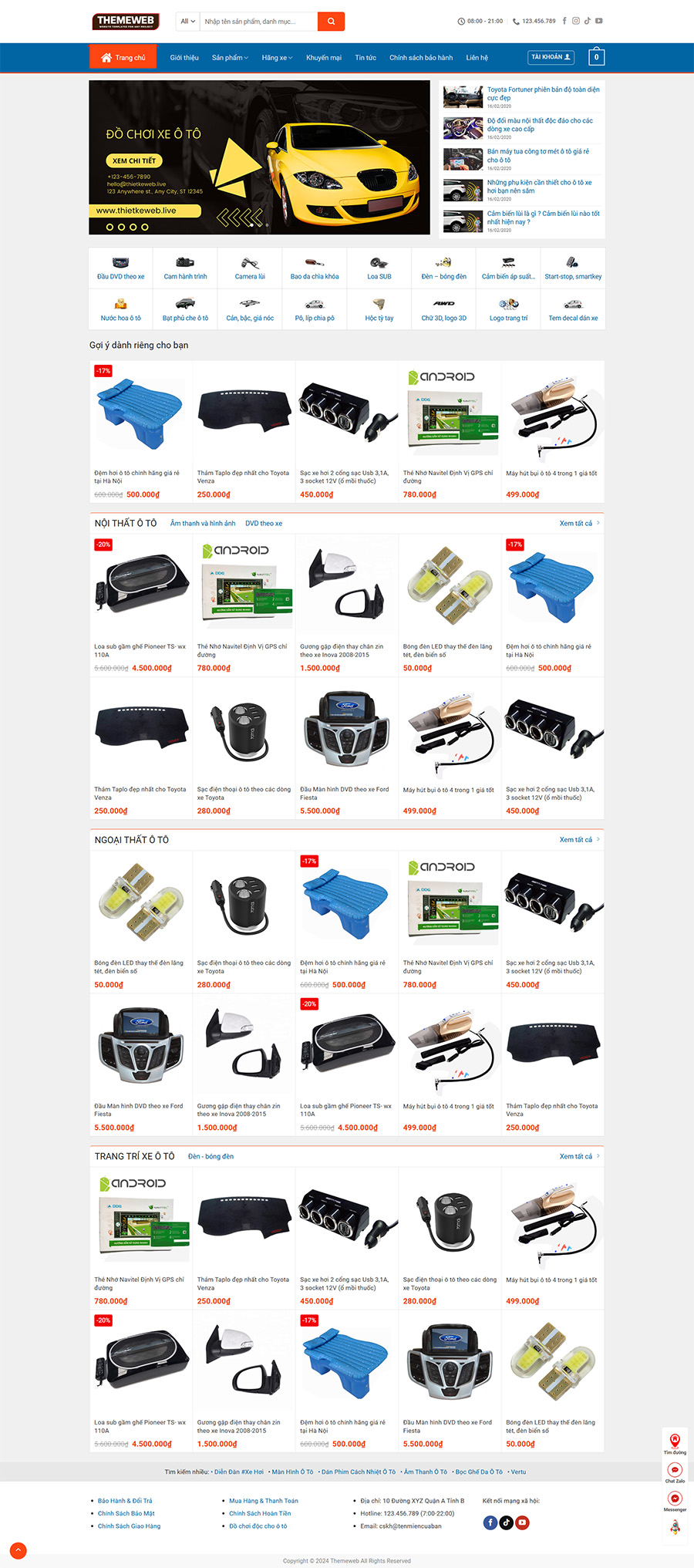 Mẫu website bán phụ tùng xe ô tô được phát triển từ theme flatsome dành cho web ô tô xe máy, được thiết kế trên nền tảng CMS WordPress đẹp mắt và linh hoạt để phù hợp với website bán phụ kiện xe ô tô, thiết bị gắn xe ô tô…