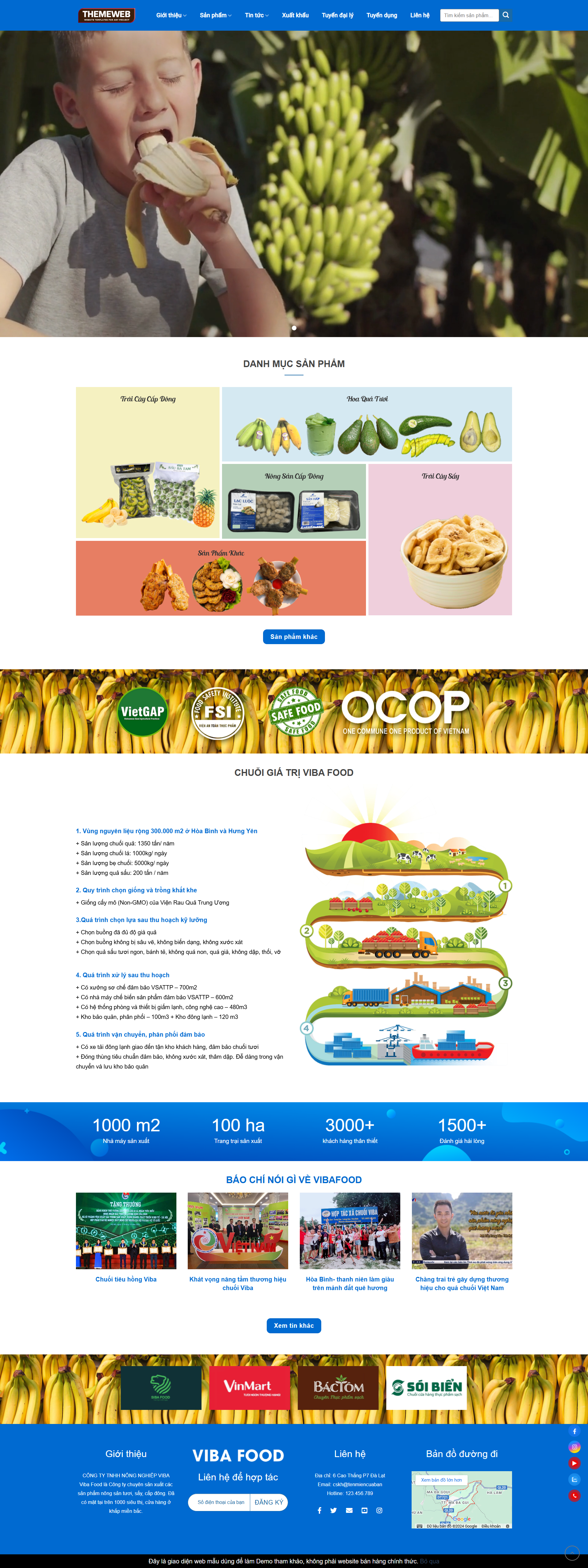 Dưới đây là một số đặc điểm và tính năng nổi bật của theme web công ty hoa quả vbfood :
