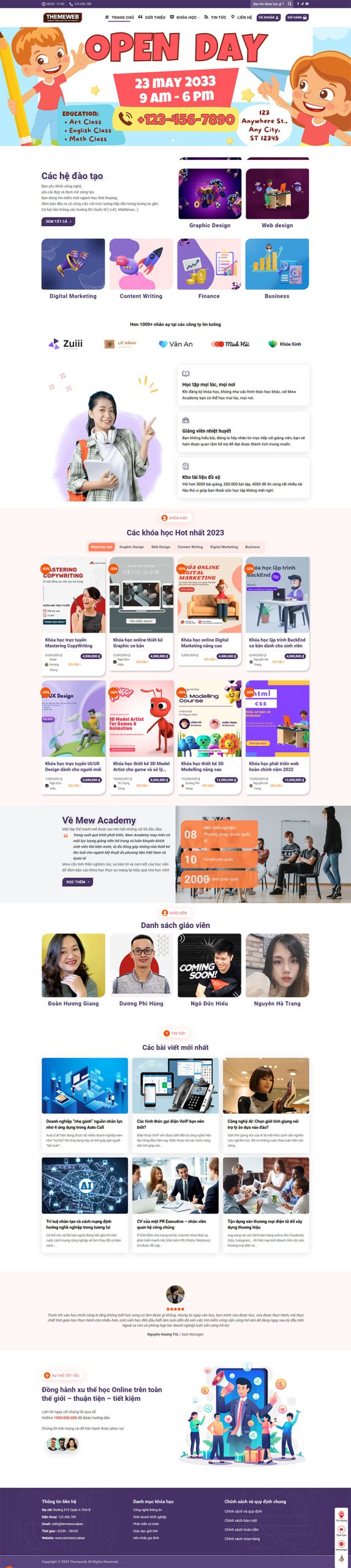 Mẫu webiste khóa học online được phát triển từ theme flatsome dành cho web đào tạo giáo dục, được thiết kế trên nền tảng CMS WordPress đẹp mắt và linh hoạt để phù hợp với website dịch vụ bán khóa học online, học online, trung tâm đào tạo giáo dục…