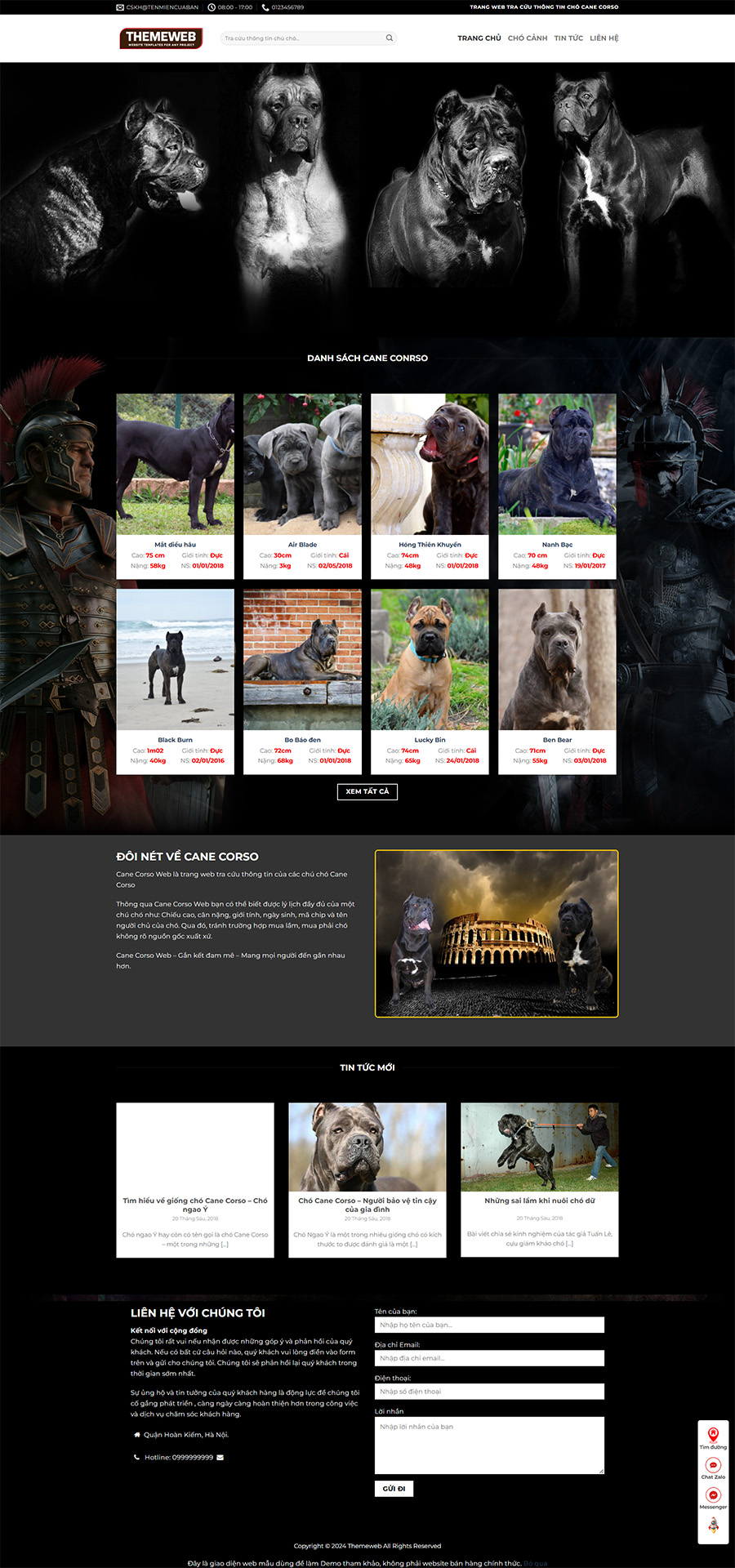 Dưới đây là một số đặc điểm và tính năng nổi bật của Theme web dịch vụ mua bán chó con :