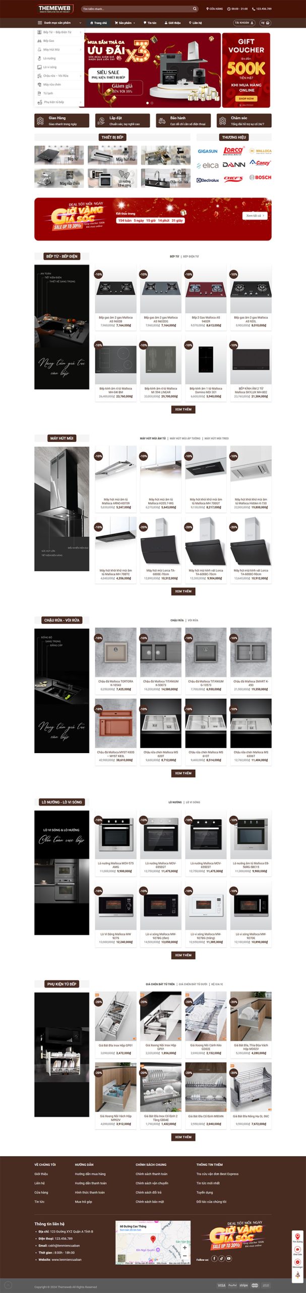 Web đẳng cấp siêu thị nhà bếp việt này được phát triển từ theme flatsome dành cho web bán hàng , được thiết kế trên nền tảng CMS WordPress đẹp mắt và linh hoạt để phù hợp với website bán thiết bị nhà bếp như, bếp điện tử,lò vi sóng, chậu rửa bát, dụng cụ nhà bếp…
